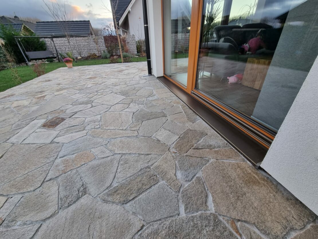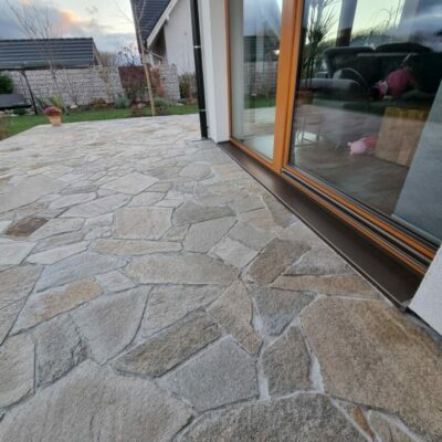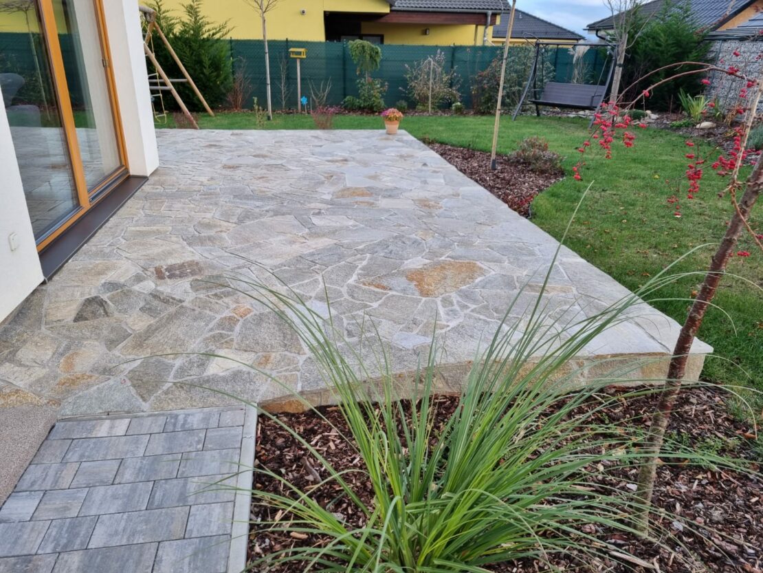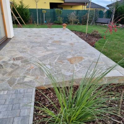 Barevnost – tato kamenná dlažba má v sobě spousty zemitých odstínů s nádherným probarvením zlatavých, resp. železitých hornin.