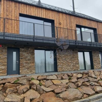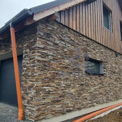 Fasáda domu je obložena metalickými filetami, které jsme lepili flexibilním lepidlem RKS od Quick-mixu.